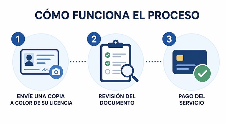 Envíeme una foto de su licencia por WhatsApp y dígame en qué país la va a usar. Le reviso el caso y le explico el proceso antes de comenzar.